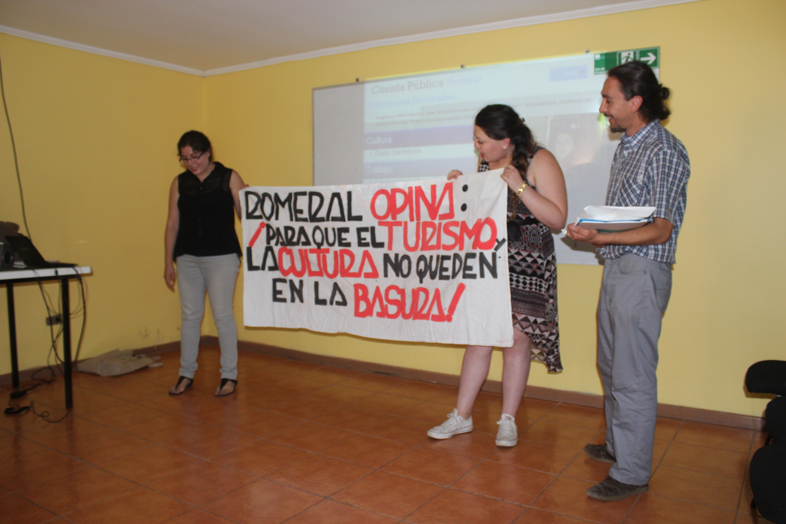 En su elocución las profesionales de Servicio País, Denisse Lizama, Administradora de Empresas Hoteleras & Turísticas y Victoria Escobar, Trabajadora Social, comentaron al público presente como se gestó su llegada a la comuna. Para comenzar con su trabajo tuvieron que hacer una intervención en la comunidad para diagnosticar la cultura y visualizar como ésta era vista por los habitantes. Para eso tuvieron que recorrer Romeral de pies a cabeza y trabajar duro buscando las deficiencias culturales para conseguir buenos resultados y, para eso, hicieron parte de su trabajo a la comunidad.